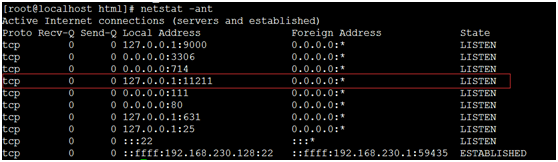 6、 查看端口,看memcached是否启动成功!# netstat –ant